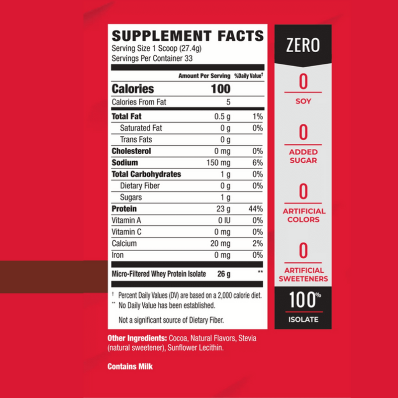 - 100% Micro-Filtered Whey Protein Isolate